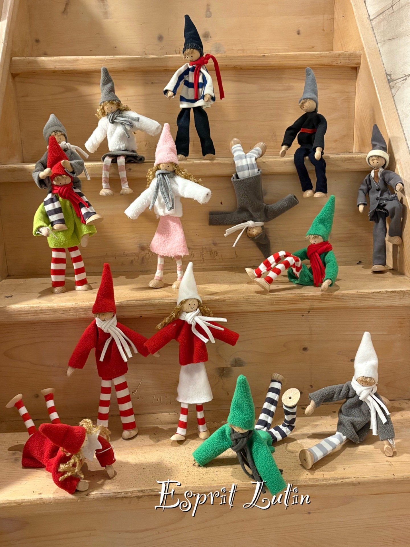 Les lutins mesurent entre 26 et 30 cm et leurs corps et membres sont réalisés en corde